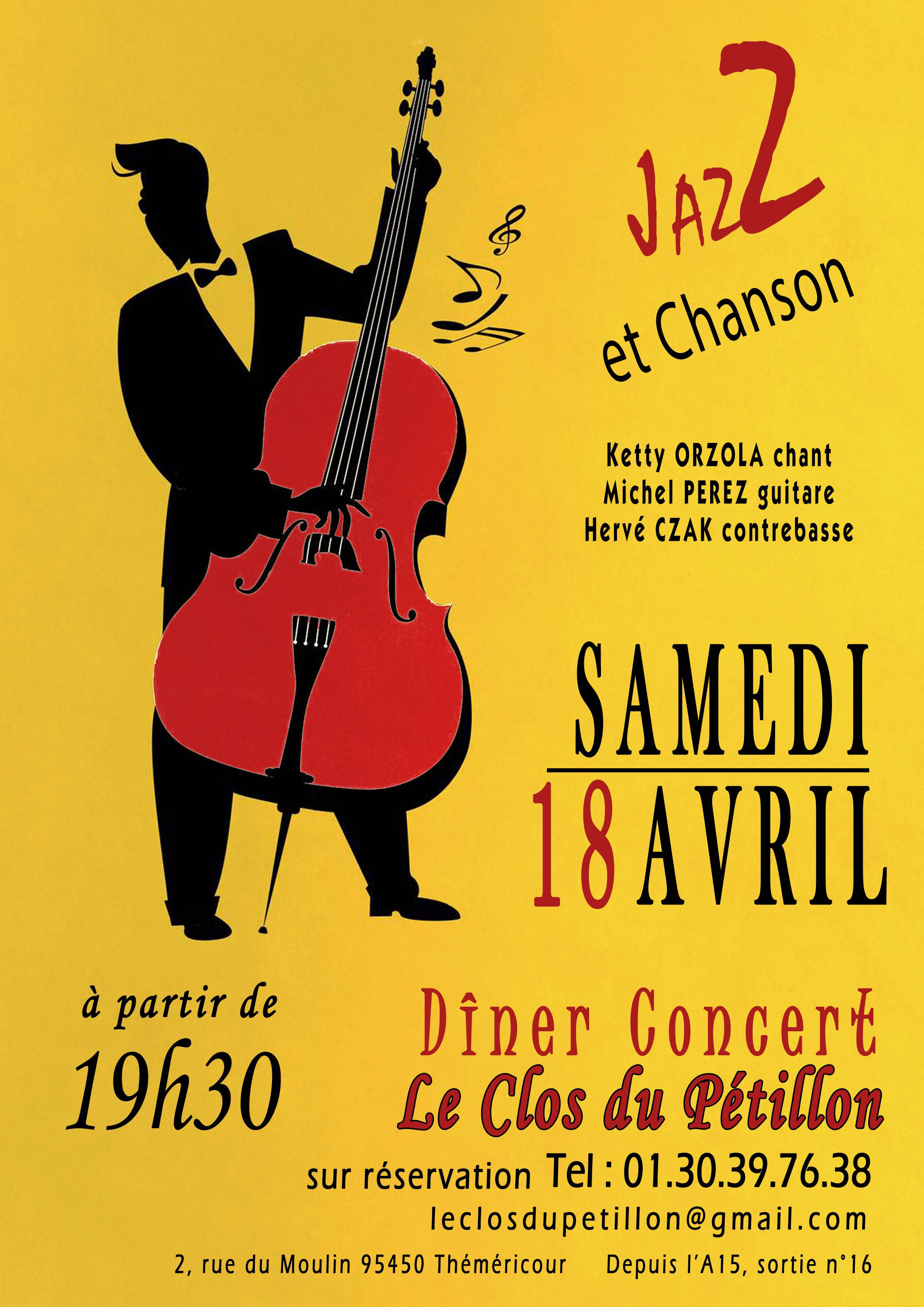 Le 18 avril à 19h30, le restaurant Le Clos du Pétillon vous invite à une soirée musicale placée sous le signe du jazz et de la chanson.